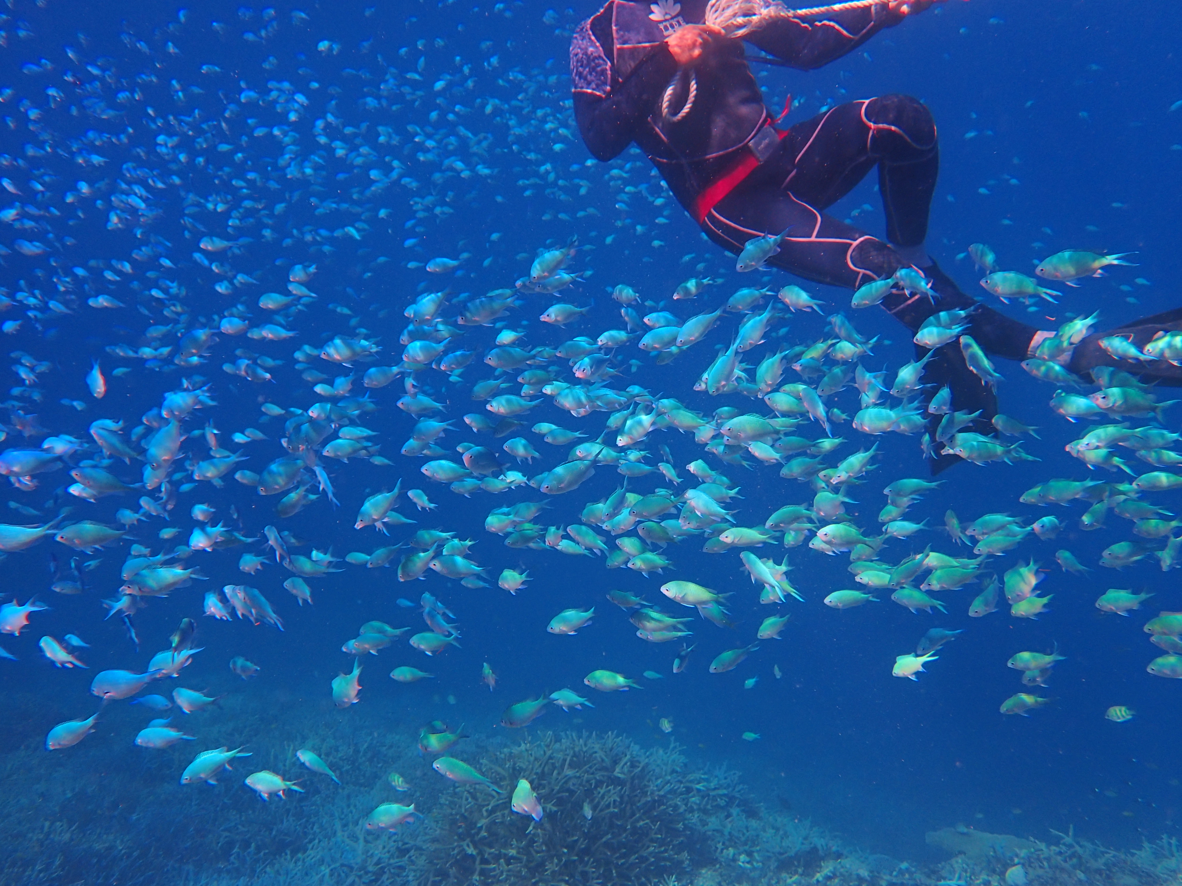 540代投稿月:2022/055/13に参加しました。 少し曇って軽く雨も降っていましたが、船に乗ってポイントに行くのも楽しいし、海の中は魚もサンゴもたくさんでとてもキレイで最高でした! 船に乗る前にインストラクターさんがキチンと注意点などを説明してくれたのも安心しました。物腰も柔らかく笑顔で対応してくれて楽しかったです。 来年絶対また行くので次回は長時間のプランにします。